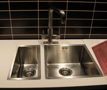 мойка для кухни врезная из нержавеющей стали 95х50 см.2 чаши SINKLIGHT N 9550C 0.8/180 1.5E матовая