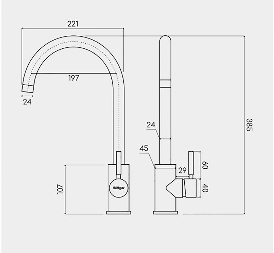 Описание "Смеситель для кухни графит нержавейка Höffger HFG-385B"