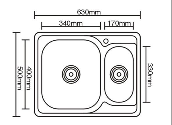 Описание "мойка для кухни врезная из нержавеющей стали 63х50 см.2 чаши SINKLIGHT N 6350 L 0.8/180 1.5P полированная левая"